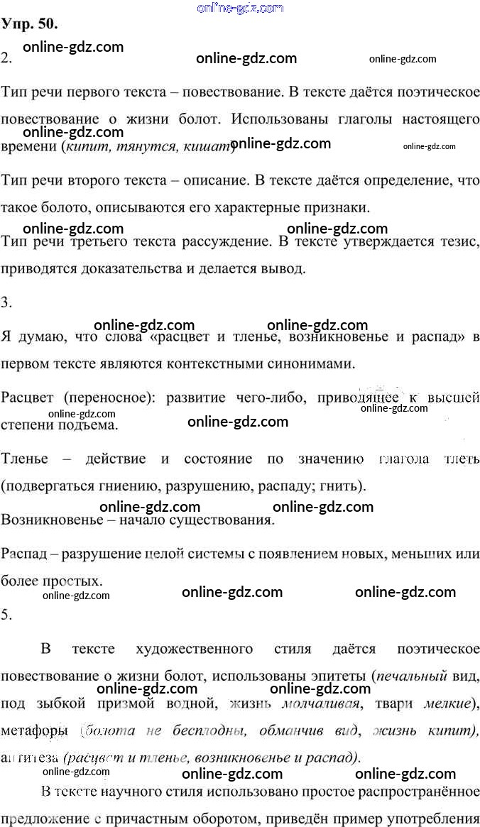 Готовые домашние задания по Русскому языку за 7 класс Учебник Быстрова, Кибирева Инновационная школа 2019 - Упражнения Часть 1 50