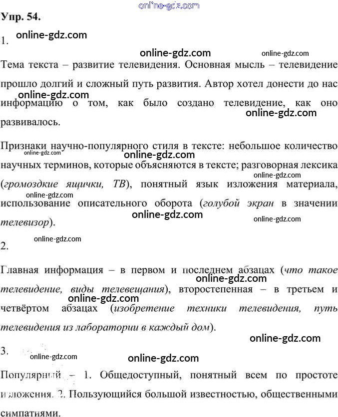 Готовые домашние задания по Русскому языку за 7 класс Учебник Быстрова, Кибирева Инновационная школа 2019 - Упражнения Часть 1 54
