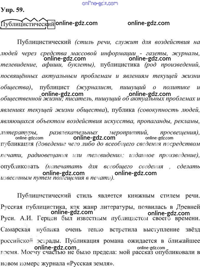 Готовые домашние задания по Русскому языку за 7 класс Учебник Быстрова, Кибирева Инновационная школа 2019 - Упражнения Часть 1 59