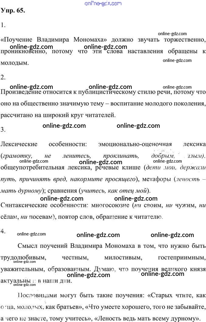Готовые домашние задания по Русскому языку за 7 класс Учебник Быстрова, Кибирева Инновационная школа 2019 - Упражнения Часть 1 65