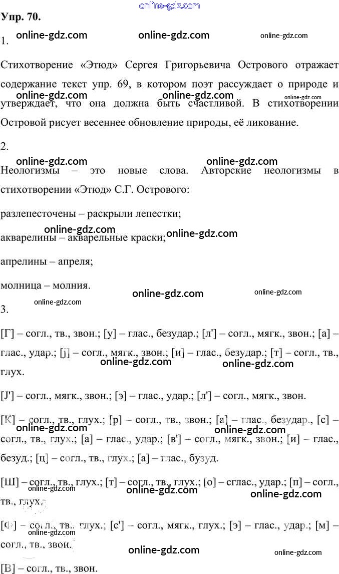 Готовые домашние задания по Русскому языку за 7 класс Учебник Быстрова, Кибирева Инновационная школа 2019 - Упражнения Часть 1 70