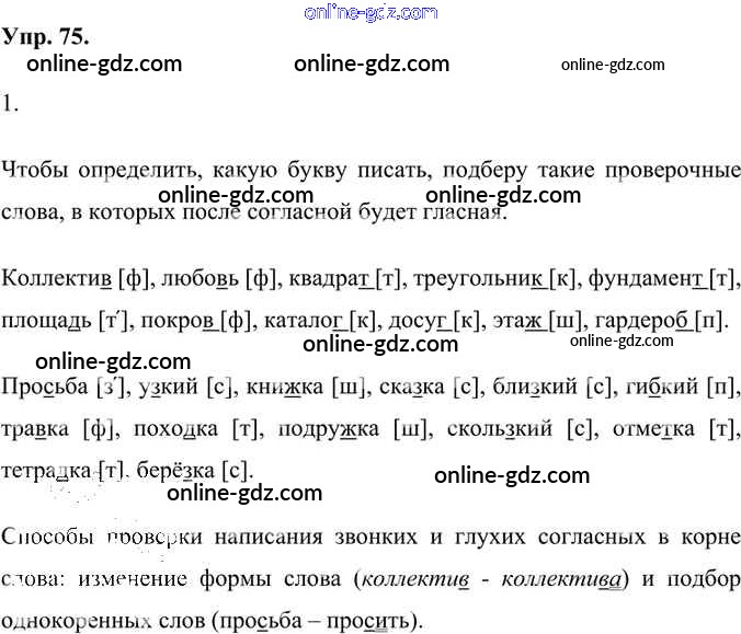 Готовые домашние задания по Русскому языку за 7 класс Учебник Быстрова, Кибирева Инновационная школа 2019 - Упражнения Часть 1 75