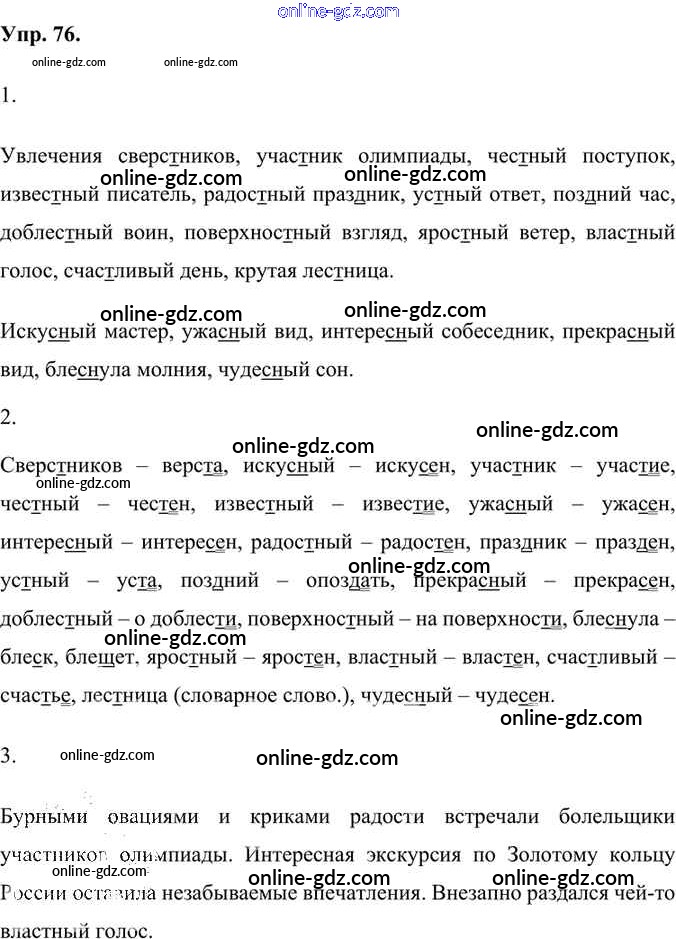 Готовые домашние задания по Русскому языку за 7 класс Учебник Быстрова, Кибирева Инновационная школа 2019 - Упражнения Часть 1 76
