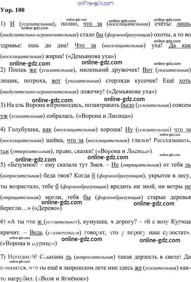 Готовые домашние задания по Русскому языку за 7 класс Учебник Быстрова, Кибирева Инновационная школа 2019 - Упражнения Часть 2 100