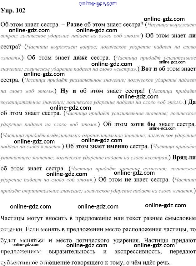 Готовые домашние задания по Русскому языку за 7 класс Учебник Быстрова, Кибирева Инновационная школа 2019 - Упражнения Часть 2 102