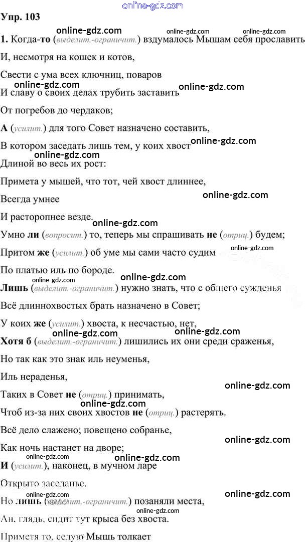 Готовые домашние задания по Русскому языку за 7 класс Учебник Быстрова, Кибирева Инновационная школа 2019 - Упражнения Часть 2 103