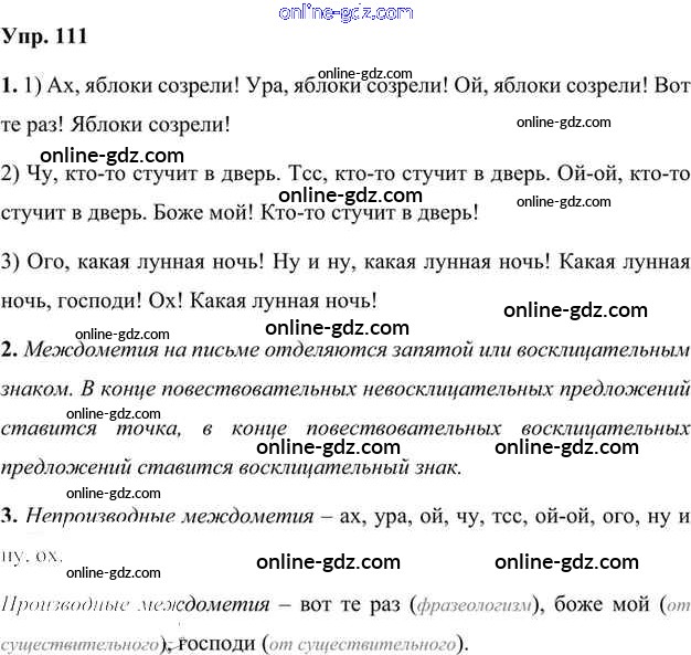 Готовые домашние задания по Русскому языку за 7 класс Учебник Быстрова, Кибирева Инновационная школа 2019 - Упражнения Часть 2 111
