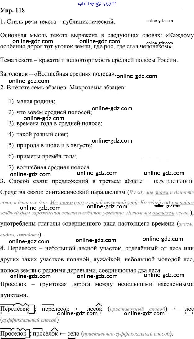 Готовые домашние задания по Русскому языку за 7 класс Учебник Быстрова, Кибирева Инновационная школа 2019 - Упражнения Часть 2 118
