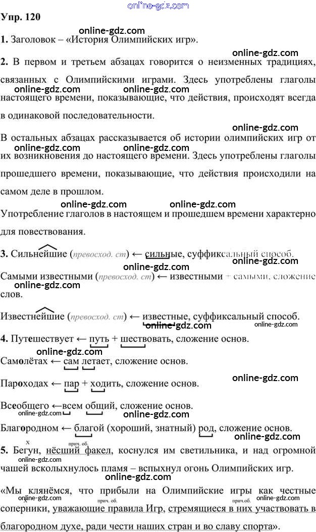 Готовые домашние задания по Русскому языку за 7 класс Учебник Быстрова, Кибирева Инновационная школа 2019 - Упражнения Часть 2 120
