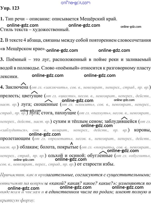 Готовые домашние задания по Русскому языку за 7 класс Учебник Быстрова, Кибирева Инновационная школа 2019 - Упражнения Часть 2 123