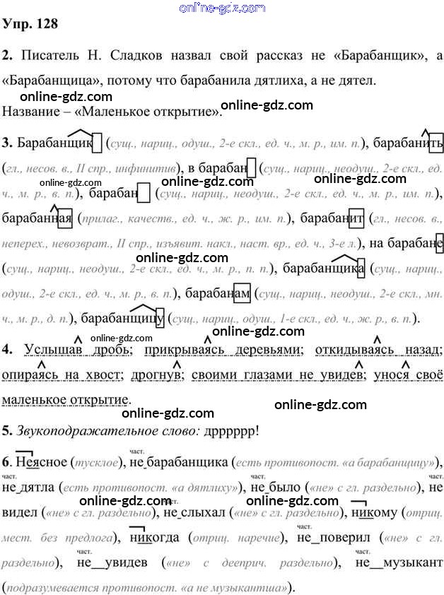 Готовые домашние задания по Русскому языку за 7 класс Учебник Быстрова, Кибирева Инновационная школа 2019 - Упражнения Часть 2 128