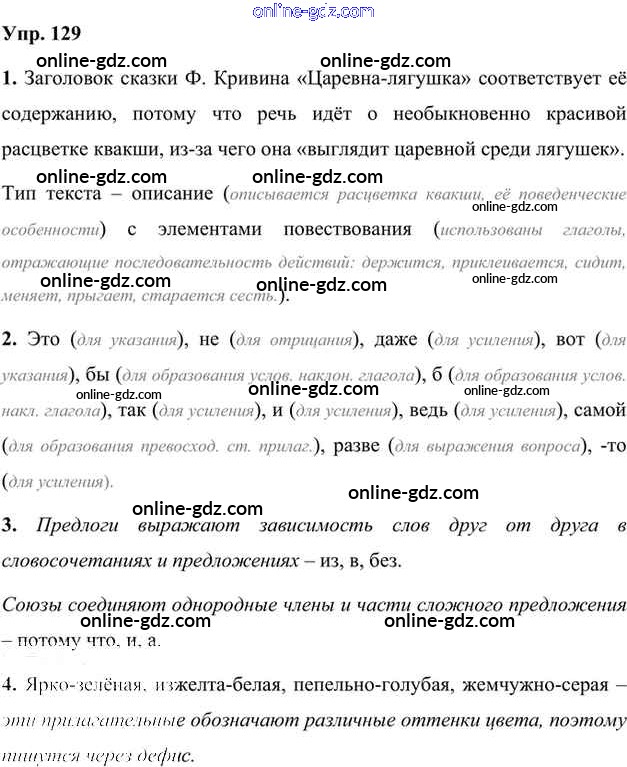 Готовые домашние задания по Русскому языку за 7 класс Учебник Быстрова, Кибирева Инновационная школа 2019 - Упражнения Часть 2 129