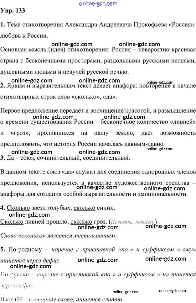 Готовые домашние задания по Русскому языку за 7 класс Учебник Быстрова, Кибирева Инновационная школа 2019 - Упражнения Часть 2 133