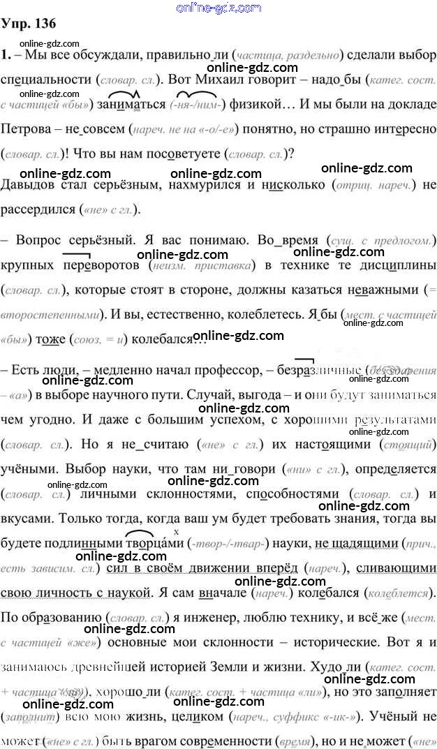 Готовые домашние задания по Русскому языку за 7 класс Учебник Быстрова, Кибирева Инновационная школа 2019 - Упражнения Часть 2 136