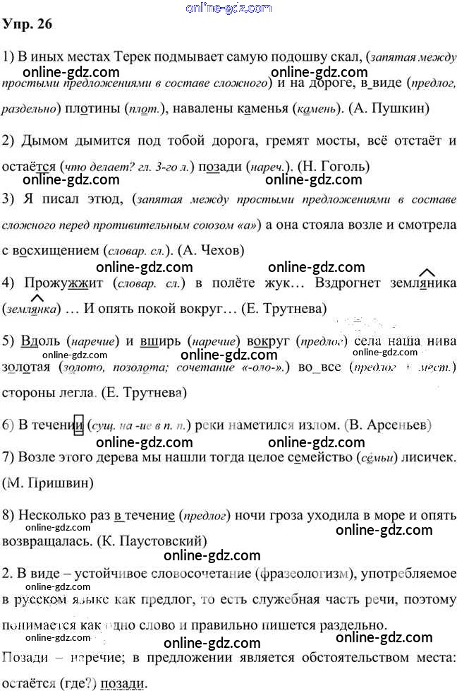 Готовые домашние задания по Русскому языку за 7 класс Учебник Быстрова, Кибирева Инновационная школа 2019 - Упражнения Часть 2 26