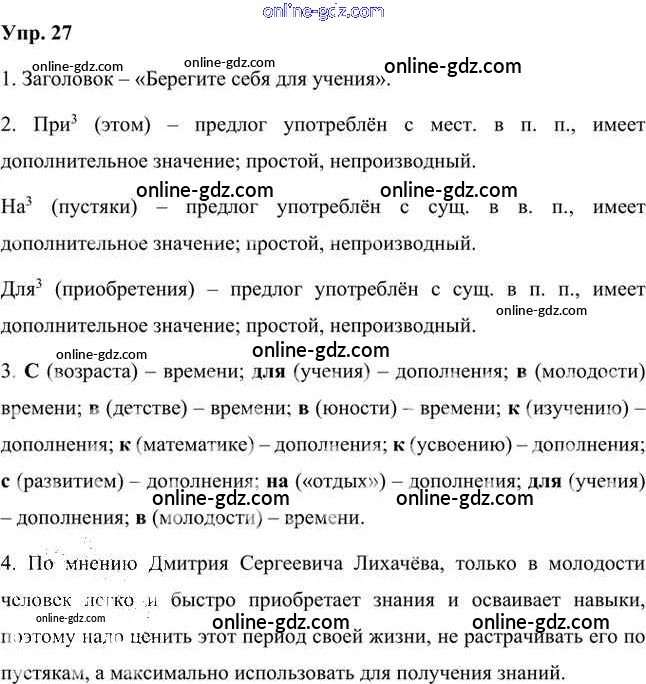 Готовые домашние задания по Русскому языку за 7 класс Учебник Быстрова, Кибирева Инновационная школа 2019 - Упражнения Часть 2 27