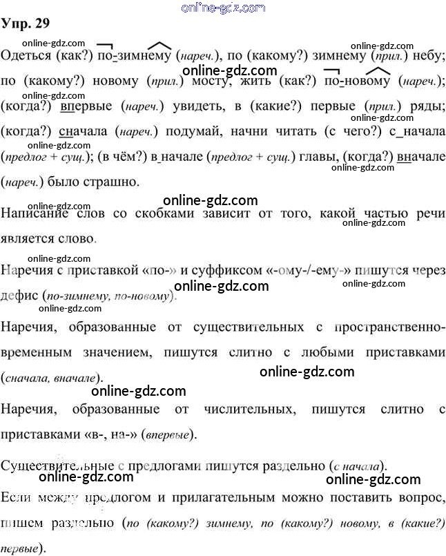 Готовые домашние задания по Русскому языку за 7 класс Учебник Быстрова, Кибирева Инновационная школа 2019 - Упражнения Часть 2 29