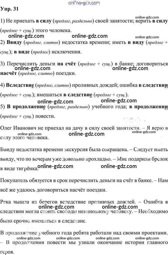 Готовые домашние задания по Русскому языку за 7 класс Учебник Быстрова, Кибирева Инновационная школа 2019 - Упражнения Часть 2 31