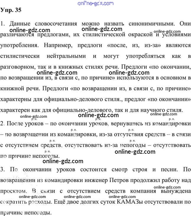 Готовые домашние задания по Русскому языку за 7 класс Учебник Быстрова, Кибирева Инновационная школа 2019 - Упражнения Часть 2 35