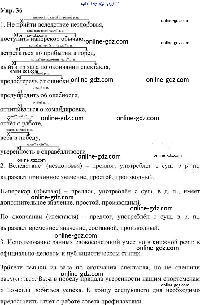 Готовые домашние задания по Русскому языку за 7 класс Учебник Быстрова, Кибирева Инновационная школа 2019 - Упражнения Часть 2 36