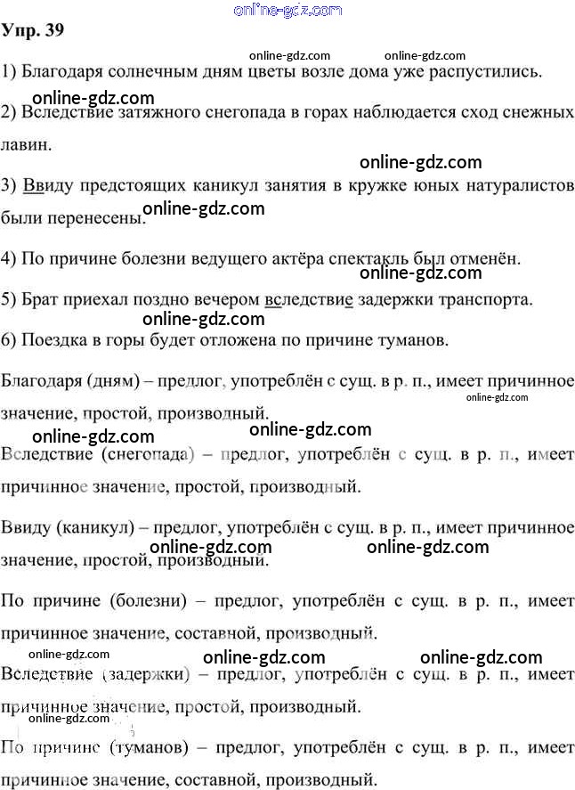 Готовые домашние задания по Русскому языку за 7 класс Учебник Быстрова, Кибирева Инновационная школа 2019 - Упражнения Часть 2 39