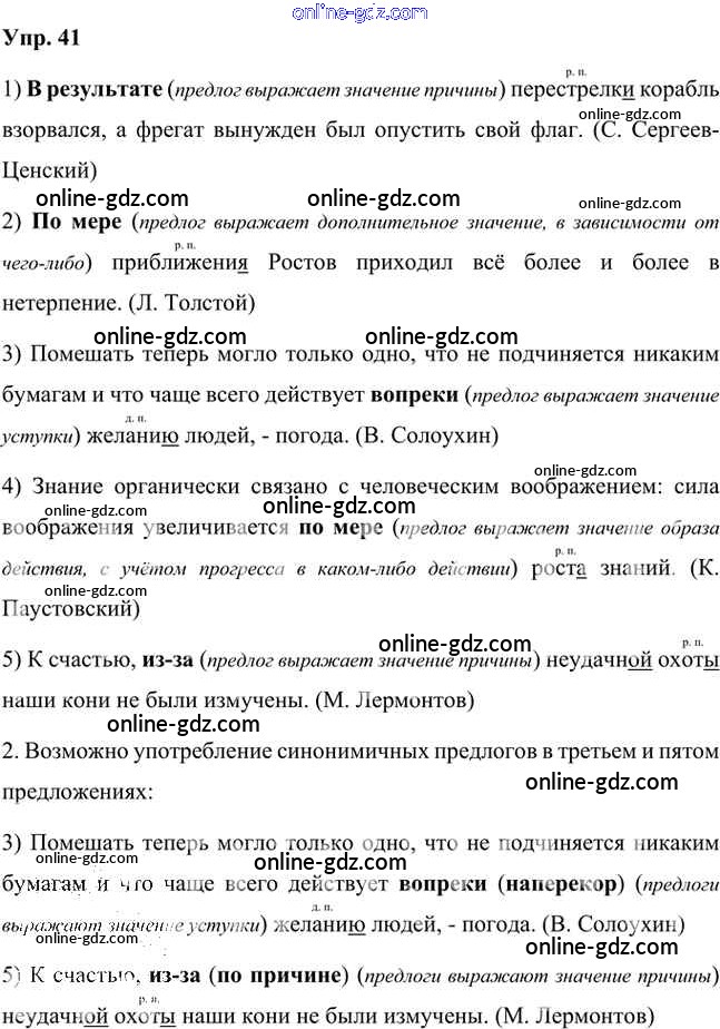 Готовые домашние задания по Русскому языку за 7 класс Учебник Быстрова, Кибирева Инновационная школа 2019 - Упражнения Часть 2 41