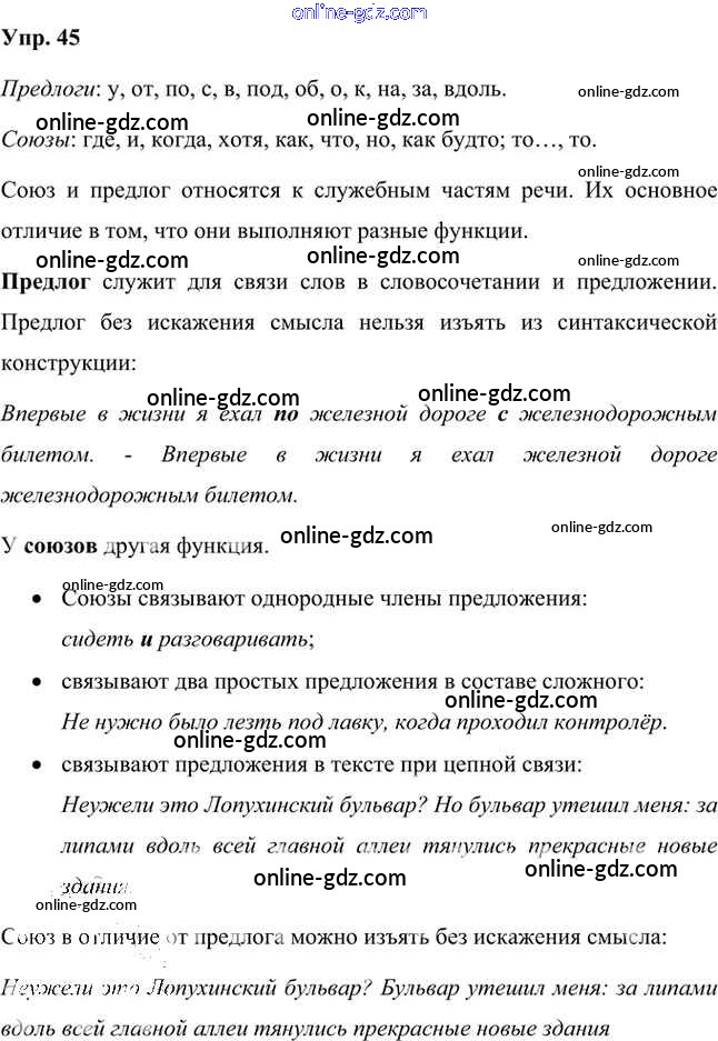 Готовые домашние задания по Русскому языку за 7 класс Учебник Быстрова, Кибирева Инновационная школа 2019 - Упражнения Часть 2 45