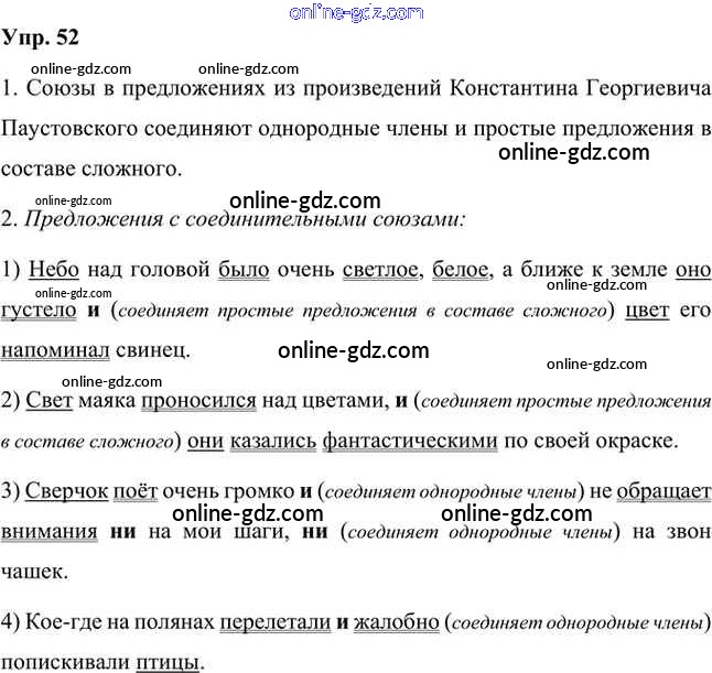 Готовые домашние задания по Русскому языку за 7 класс Учебник Быстрова, Кибирева Инновационная школа 2019 - Упражнения Часть 2 52