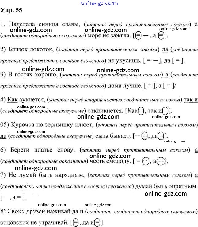 Готовые домашние задания по Русскому языку за 7 класс Учебник Быстрова, Кибирева Инновационная школа 2019 - Упражнения Часть 2 55