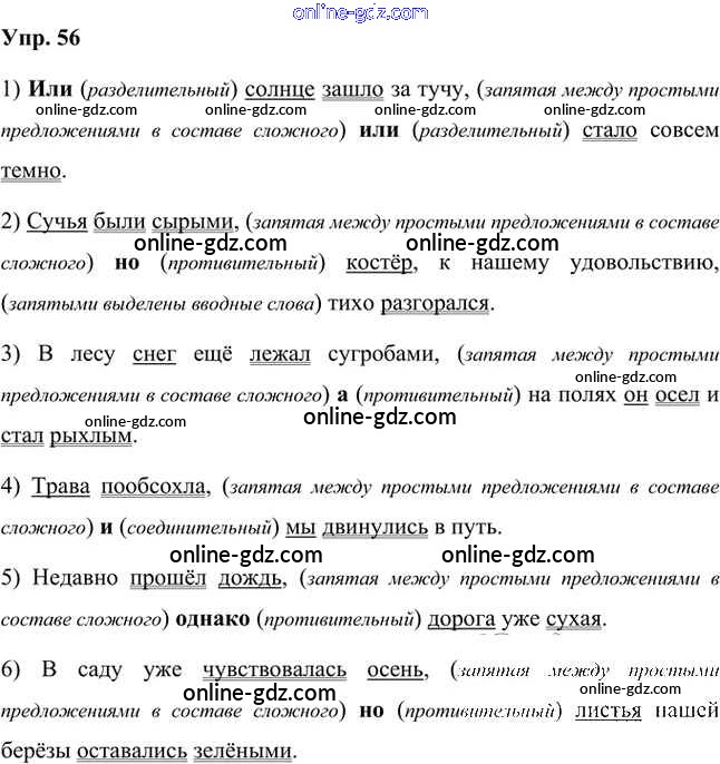 Готовые домашние задания по Русскому языку за 7 класс Учебник Быстрова, Кибирева Инновационная школа 2019 - Упражнения Часть 2 56