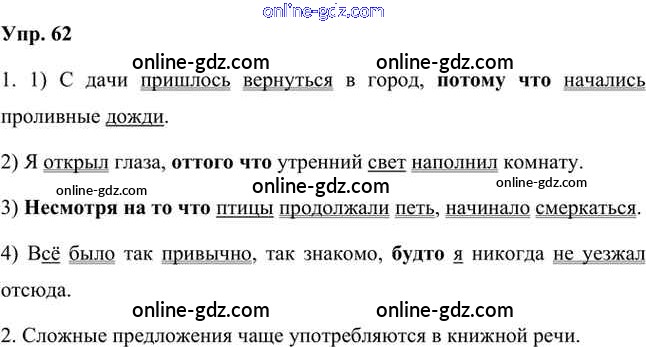 Готовые домашние задания по Русскому языку за 7 класс Учебник Быстрова, Кибирева Инновационная школа 2019 - Упражнения Часть 2 62