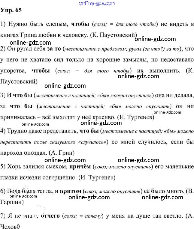 Готовые домашние задания по Русскому языку за 7 класс Учебник Быстрова, Кибирева Инновационная школа 2019 - Упражнения Часть 2 65