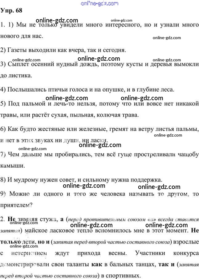 Готовые домашние задания по Русскому языку за 7 класс Учебник Быстрова, Кибирева Инновационная школа 2019 - Упражнения Часть 2 68