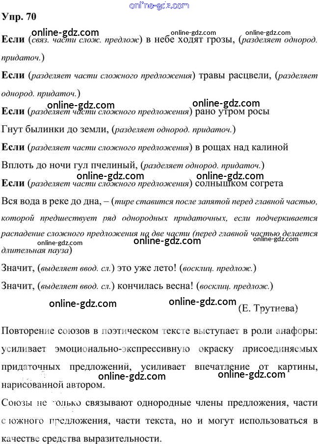 Готовые домашние задания по Русскому языку за 7 класс Учебник Быстрова, Кибирева Инновационная школа 2019 - Упражнения Часть 2 70
