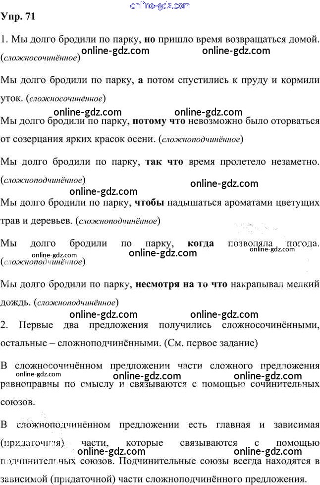 Готовые домашние задания по Русскому языку за 7 класс Учебник Быстрова, Кибирева Инновационная школа 2019 - Упражнения Часть 2 71