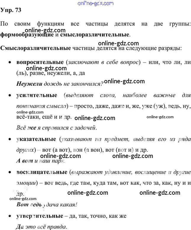 Готовые домашние задания по Русскому языку за 7 класс Учебник Быстрова, Кибирева Инновационная школа 2019 - Упражнения Часть 2 73