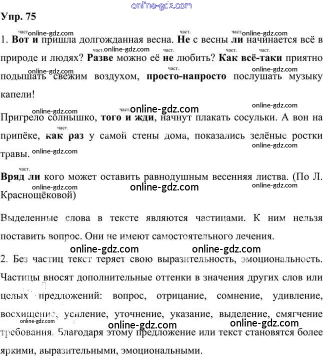 Готовые домашние задания по Русскому языку за 7 класс Учебник Быстрова, Кибирева Инновационная школа 2019 - Упражнения Часть 2 75