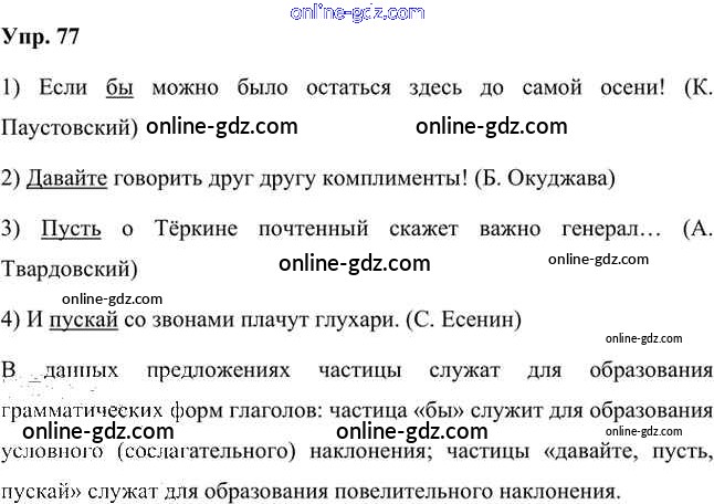 Готовые домашние задания по Русскому языку за 7 класс Учебник Быстрова, Кибирева Инновационная школа 2019 - Упражнения Часть 2 77