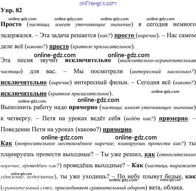 Готовые домашние задания по Русскому языку за 7 класс Учебник Быстрова, Кибирева Инновационная школа 2019 - Упражнения Часть 2 82