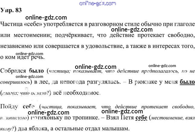 Готовые домашние задания по Русскому языку за 7 класс Учебник Быстрова, Кибирева Инновационная школа 2019 - Упражнения Часть 2 83
