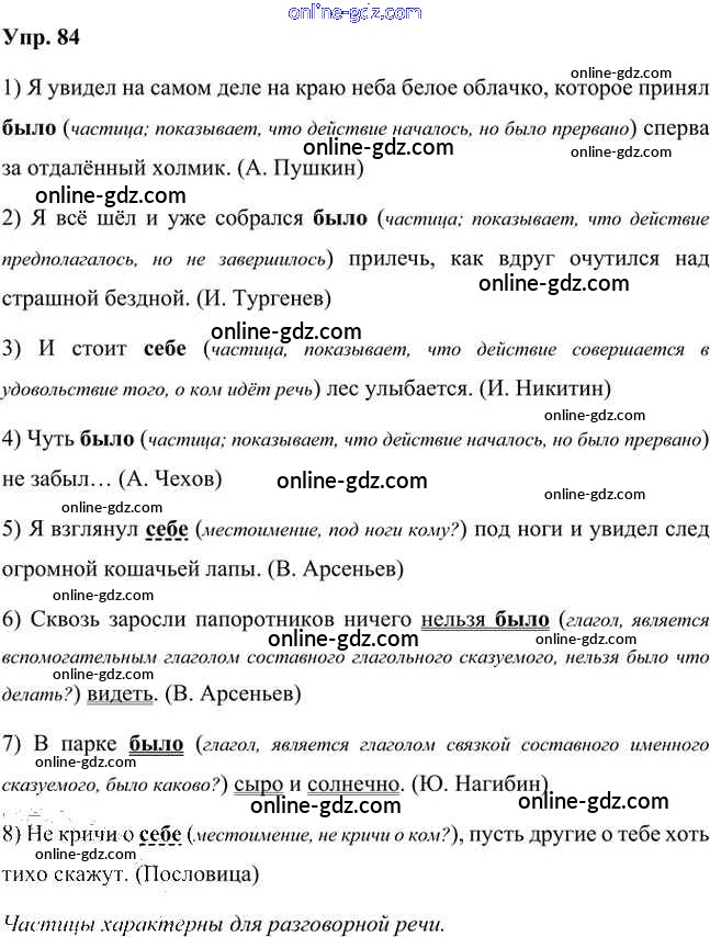 Готовые домашние задания по Русскому языку за 7 класс Учебник Быстрова, Кибирева Инновационная школа 2019 - Упражнения Часть 2 84