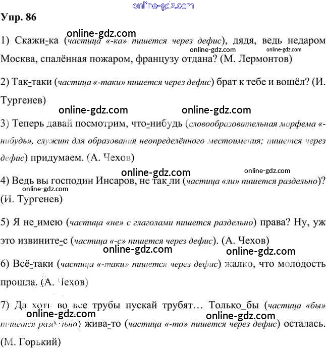 Готовые домашние задания по Русскому языку за 7 класс Учебник Быстрова, Кибирева Инновационная школа 2019 - Упражнения Часть 2 86