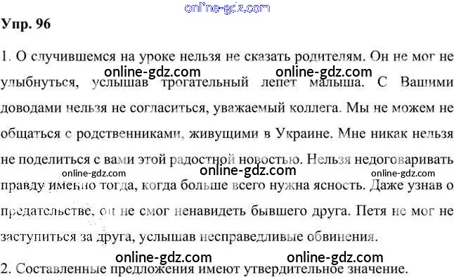 Готовые домашние задания по Русскому языку за 7 класс Учебник Быстрова, Кибирева Инновационная школа 2019 - Упражнения Часть 2 96