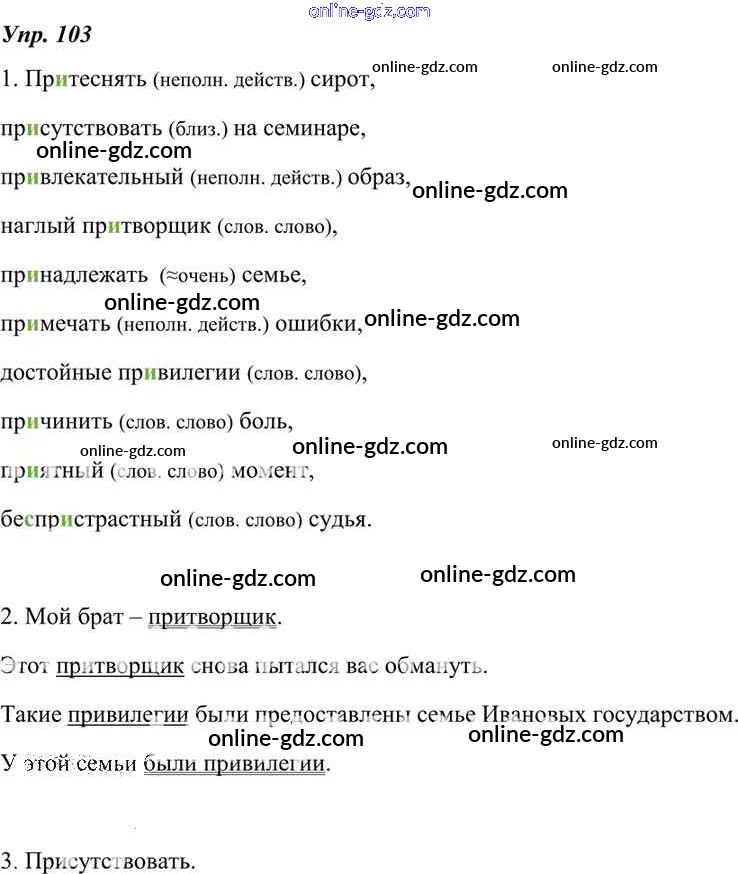 Готовые домашние задания по Русскому языку за 7 класс Учебник Разумовская, Львова УМК 2014 - Упражнения 103