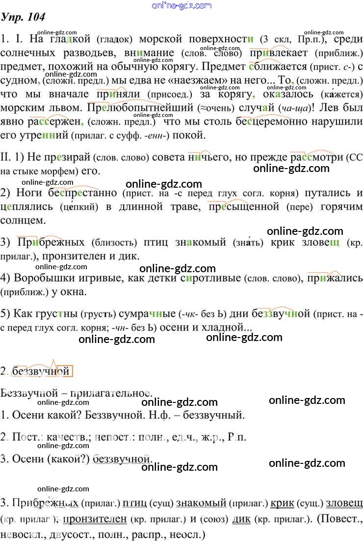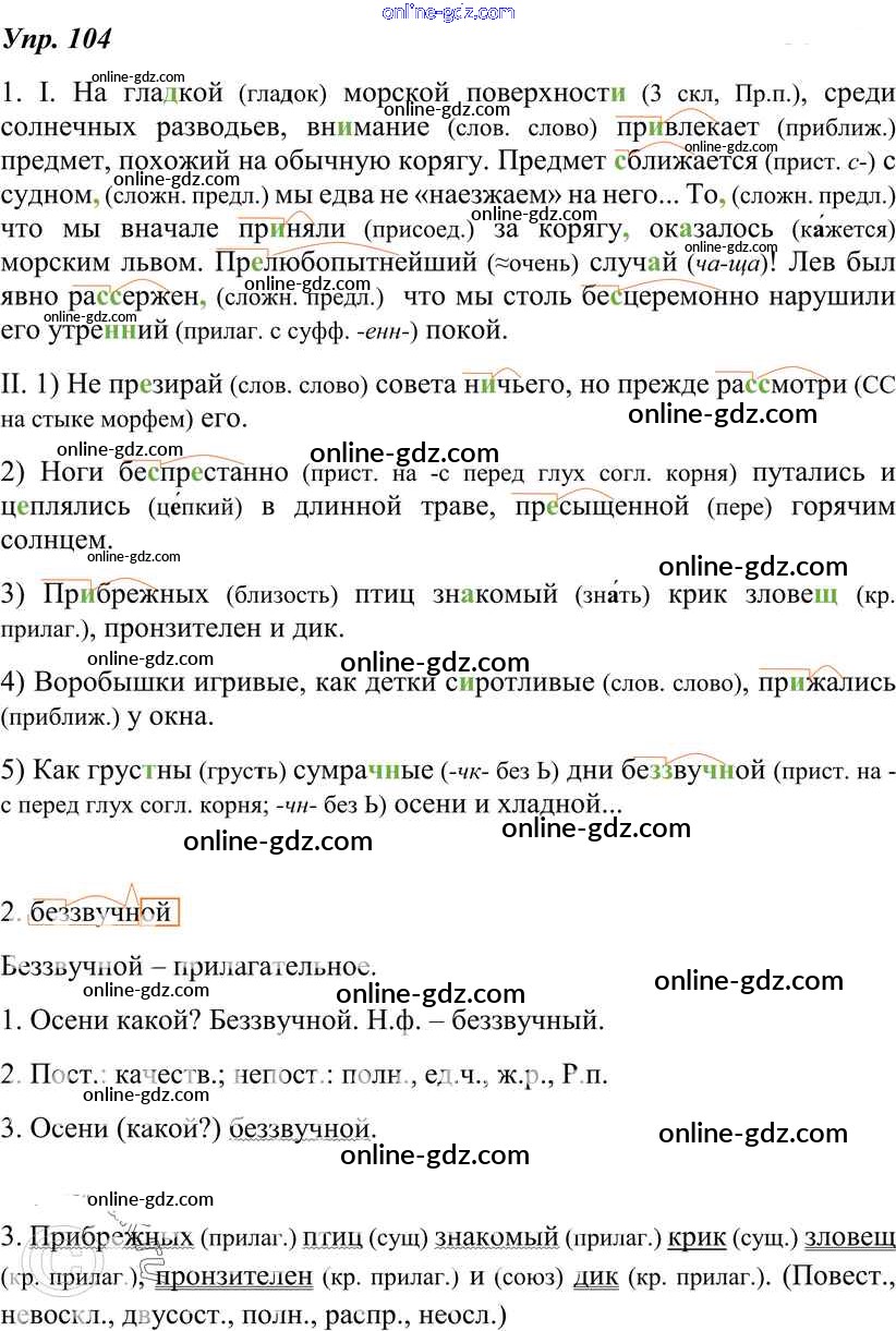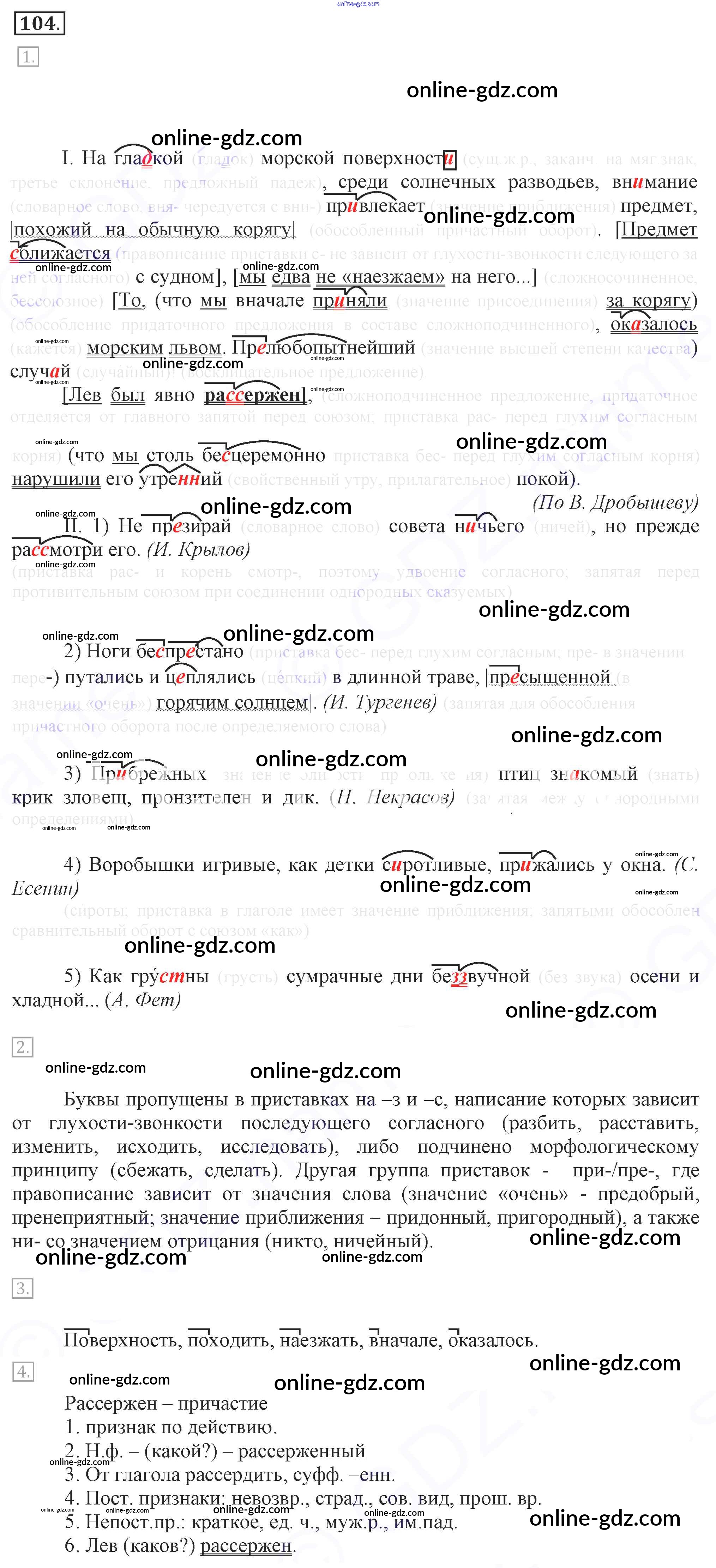 Готовые домашние задания по Русскому языку за 7 класс Учебник Разумовская, Львова УМК 2014 - Упражнения 104
