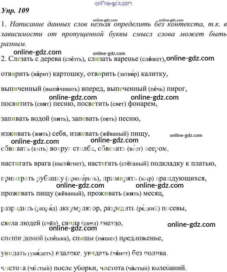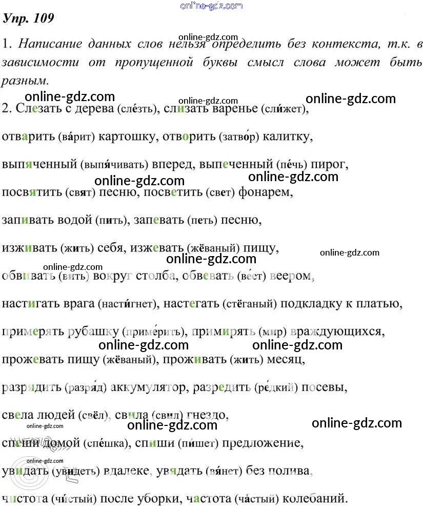 Готовые домашние задания по Русскому языку за 7 класс Учебник Разумовская, Львова УМК 2014 - Упражнения 109