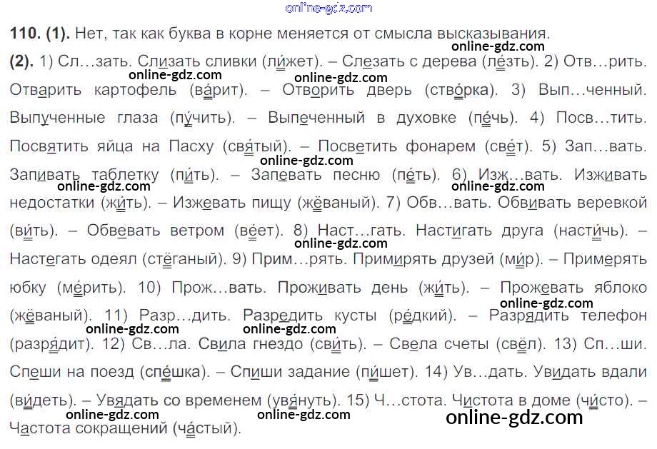 Готовые домашние задания по Русскому языку за 7 класс Учебник Разумовская, Львова УМК 2014 - Упражнения 110