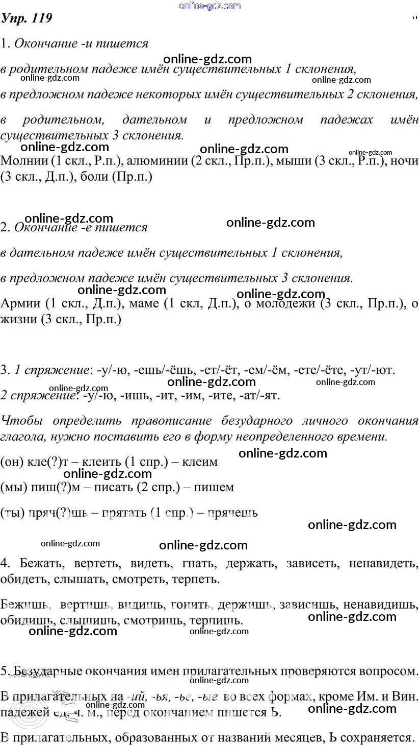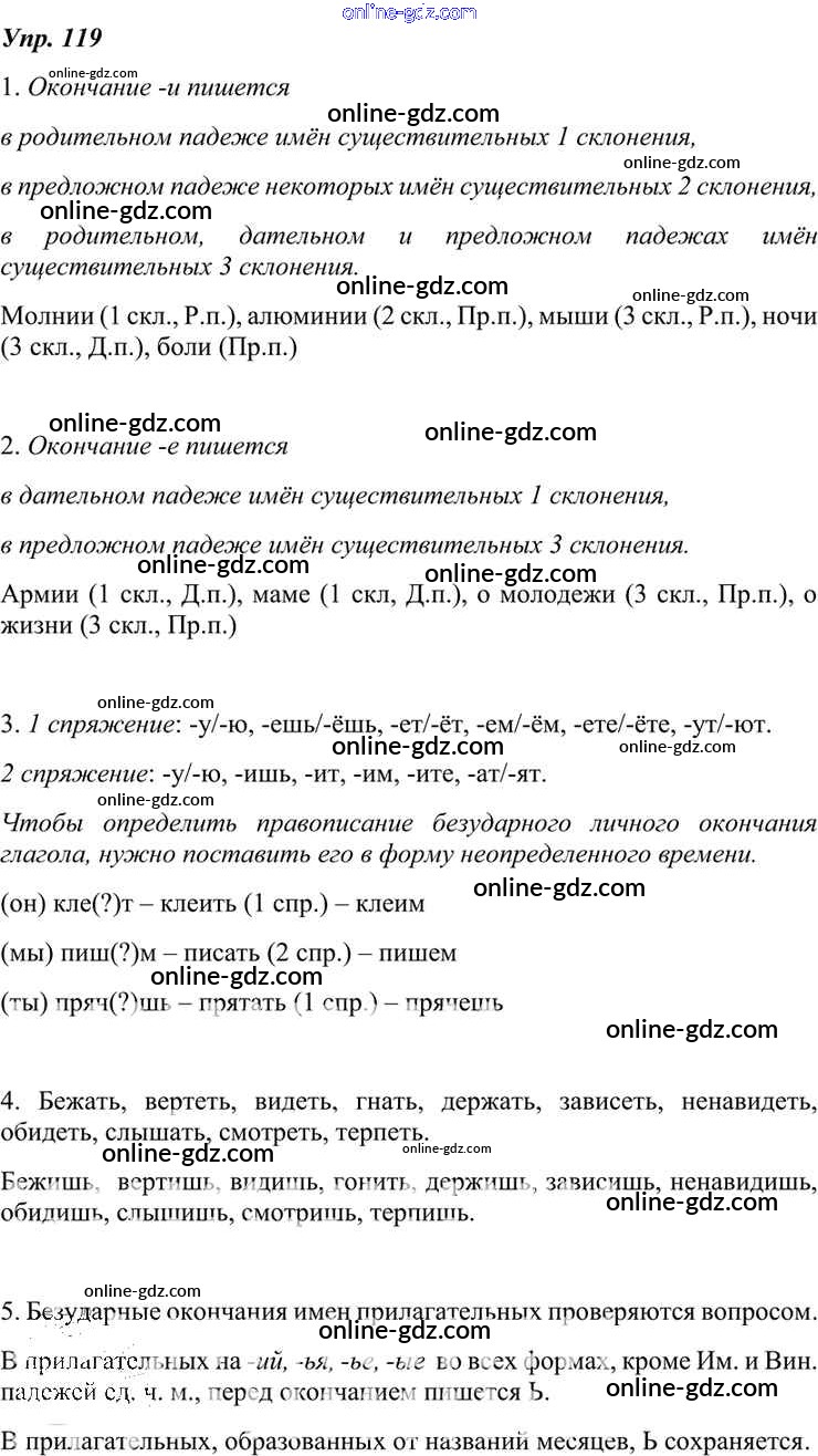 Готовые домашние задания по Русскому языку за 7 класс Учебник Разумовская, Львова УМК 2014 - Упражнения 119