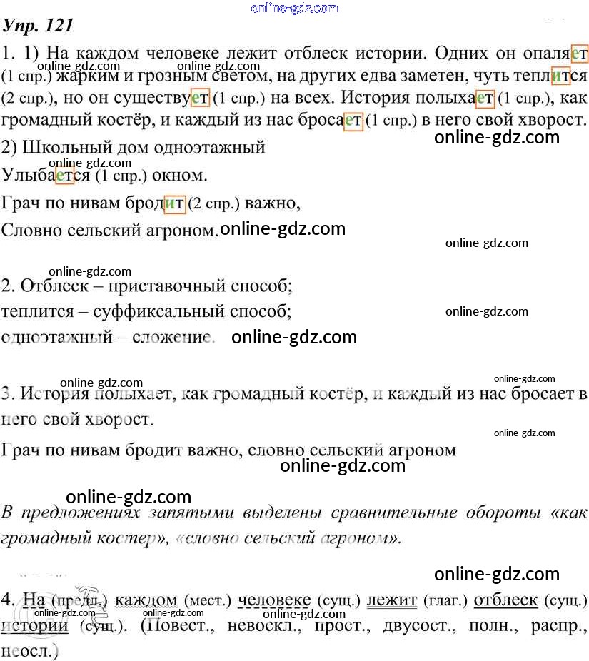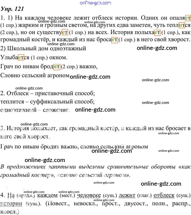 Готовые домашние задания по Русскому языку за 7 класс Учебник Разумовская, Львова УМК 2014 - Упражнения 121