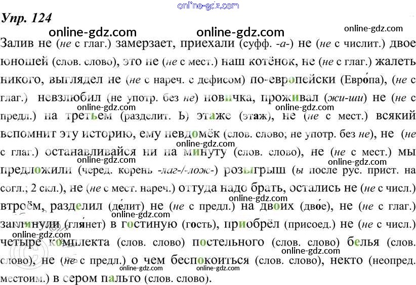 Готовые домашние задания по Русскому языку за 7 класс Учебник Разумовская, Львова УМК 2014 - Упражнения 124